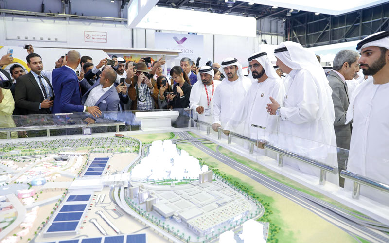 وتجول سموه، يرافقه سمو الشيخ حمدان بن محمد بن راشد آل مكتوم، ولي عهد دبي، في أرجاء المعرض، الذي يستضيفه مركز دبي التجاري العالمي، على مدى أربعة أيام، وتشارك فيه ما يزيد على 2500 شركة حكومية وخاصة، من 150 دولة، بما فيها دولة الإمارات.