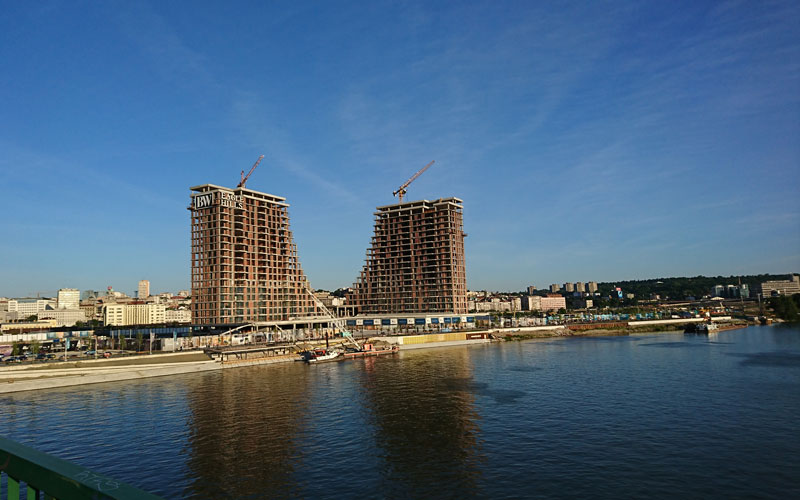 و يضم المشروع برجين يعتبران الأعلى حتى الآن في العاصمة الصربية بلغراد، بالإضافة إلى مركز تسوق عالمي، إلى جانب ممشى طورته الشركة لصالح المشروع ويمتد على أكثر من 2 كيلو متر، إذ يضم هذا الممشى تراك للدراجات ومناطق ألعاب اجتذبت العديد من الصربيين حتى قبل إكتمال المشروع.