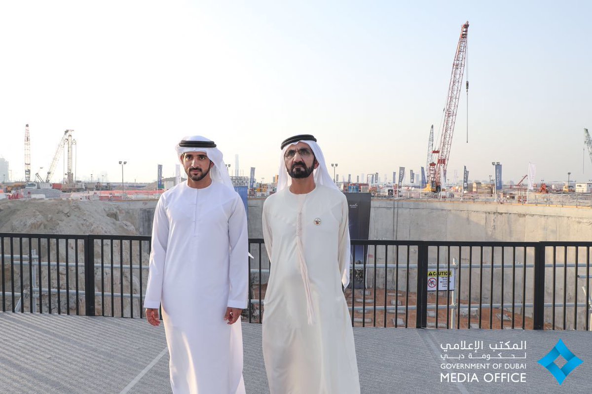 واطلع سموه رفقة سمو الشيخ حمدان بن محمد بن راشد آل مكتوم، ولي عهد دبي رئيس على أبرز الإنجازات التي تم تحقيقها في الأعمال الإنشائية إلى اليوم، بما في ذلك الانتهاء من وضع أساسات البرج في خور دبي .