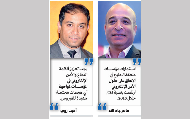 وأشاروا لـ«الإمارات اليوم»، على هامش المشاركة في فعاليات الدورة الرابعة من «معرض ومؤتمر الخليج لأمن المعلومات» (جيسك)، الذي اختتم أعماله في مركز دبي التجاري العالمي، إلى توقعات بتطور وتوسع الفيروس، الذي يتسبب في تشفير ملفات الأفراد والمؤسسات، والمطالبة بفدية مالية لاسترجاعها.