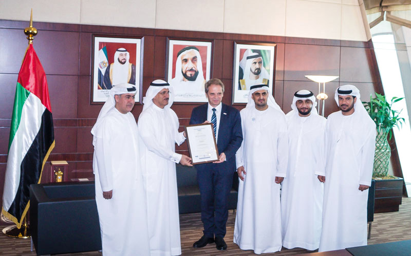 خلال تسليم المنصوري الشهادة إلى ممثلي شركة «روبرت بوش» الشرق الأوسط. من المصدر