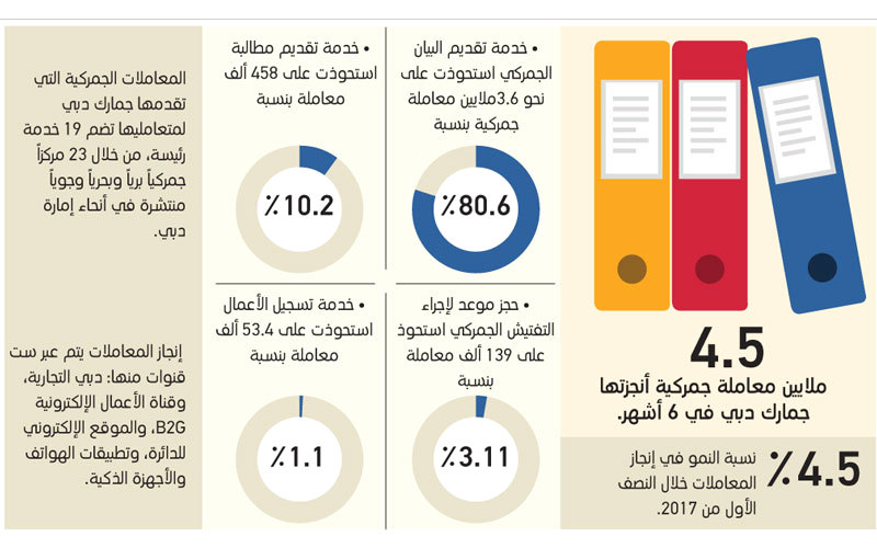 جمارك دبي تنجز 4.5 ملايين معاملة بنمو 4.5% في 6 أشهر