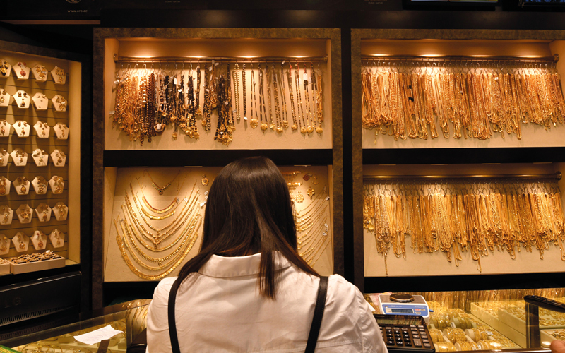 سعر غرام الذهب من عيار 24 قيراطاً بلغ 154.5 درهماً بانخفاض 1.25 درهم. تصوير: مصطفى قاسمي