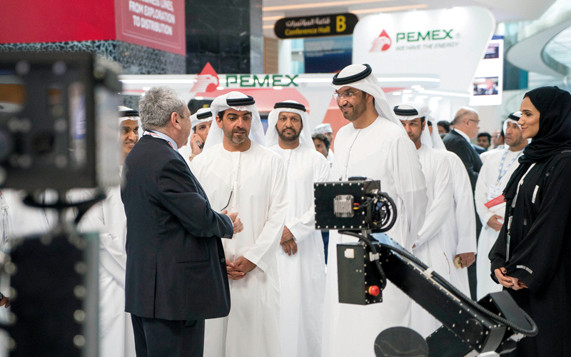 وتفقد سموه، خلال الجولة التي رافقه خلالها وزير الدولة الرئيس التنفيذي لشركة بترول أبوظبي الوطنية (أدنوك) ومجموعة شركاتها، الدكتور سلطان بن أحمد الجابر، عدداً من الأجنحة الوطنية والأجنبية، وتعرف إلى آخر مستجدات التطوير والتحديث في تقنيات الإنتاج في مجالي البترول والغاز، وأهم المعروضات والمنتوجات والمشروعات المتعلقة بالطاقة.