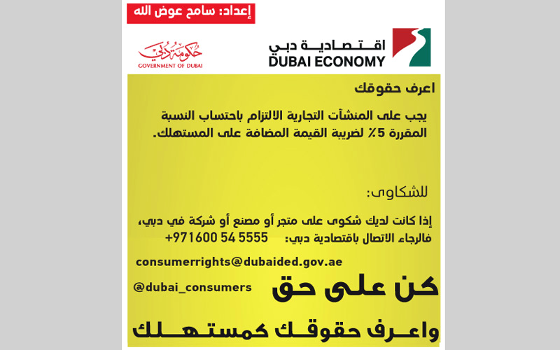 يجب على المنشآت التجارية الالتزام باحتساب النسبة المقررة 5% لضريبة القيمة المضافة على المستهلك.