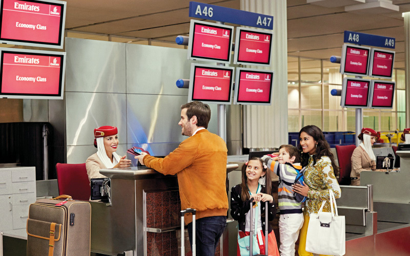 وخصصت «طيران الإمارات» للعائلات مناطق لإنهاء إجراءات السفر، تحتوي على 20 كاونتر، وتقع في المبنى رقم (3) في المنطقة (2). كما نصحت الركاب بعد إنهاء إجراءات السفر، بالحضور إلى بوابات الصعود إلى الطائرات قبل 45 دقيقة من مواعيد إقلاع الرحلات، إذ تغلق البوابات قبل 20 دقيقة من الموعد المحدد.