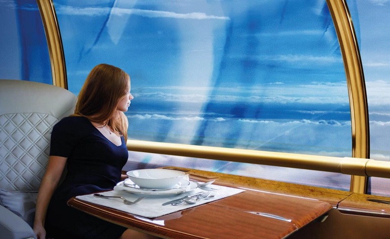ونشرت الناقلة الصور الخاصة بالصالون الجوي الجديد عبر صفحة تويتر الخاصة بها، توضح شكل وتصميم الصالة بما في ذلك المقاعد ويتيح للمسافرين رؤية المناظر في الأجواء عبر نوافذ شفافة بالكامل.