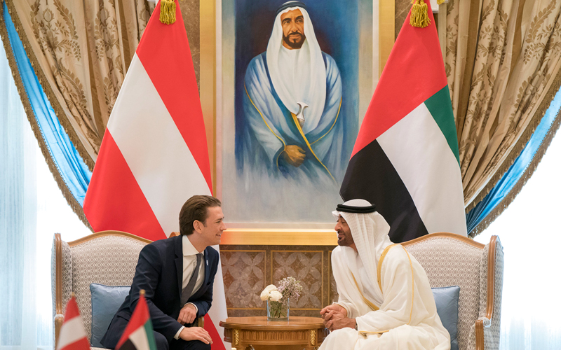 وكان صاحب السمو الشيخ محمد بن زايد آل نهيان، ولي عهد أبوظبي نائب القائد الأعلى للقوات المسلحة، بحث مع كورتز علاقات التعاون بين البلدين الصديقين، وسبل تعزيزها في مختلف المجالات، إضافة إلى عدد من القضايا الإقليمية والدولية ذات الاهتمام المشترك.