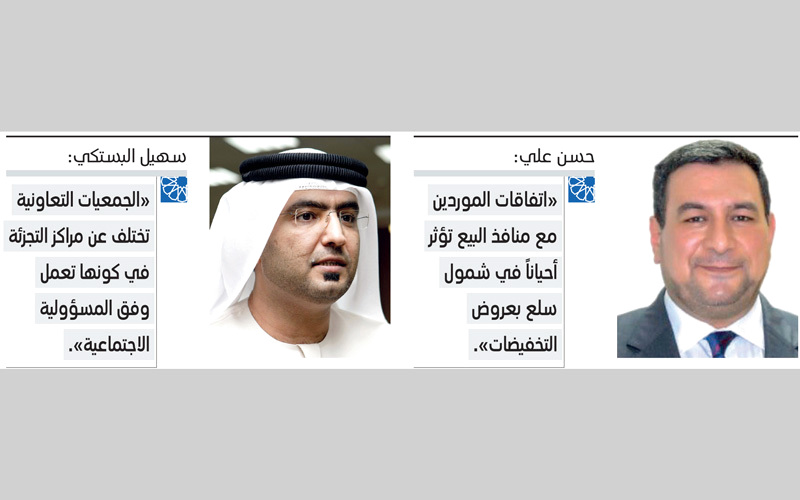 من جانبه، أرجع مدير إدارة التسويق والسعادة في «جمعية الاتحاد التعاونية»، سهيل البستكي، توسع الجمعيات التعاونية في طرح العروض على السلع الغذائية الأساسية، والتزامها بشمول العروض لسلع أساسية مثل الدجاج الطازج واللحوم والطحين وبيض المائدة، إلى أن الجمعيات التعاونية تختلف عن مراكز التجزئة والـ«هايبرماركت»، في كونها تعمل وفق معايير المسؤولية الاجتماعية ضمن دورها في قطاع تجارة التجزئة، ما يجعلها تتحمل فروق التخفيضات على تلك السلع، بصرف النظر عن طرح عروض من شركات التوريد من عدمه.
