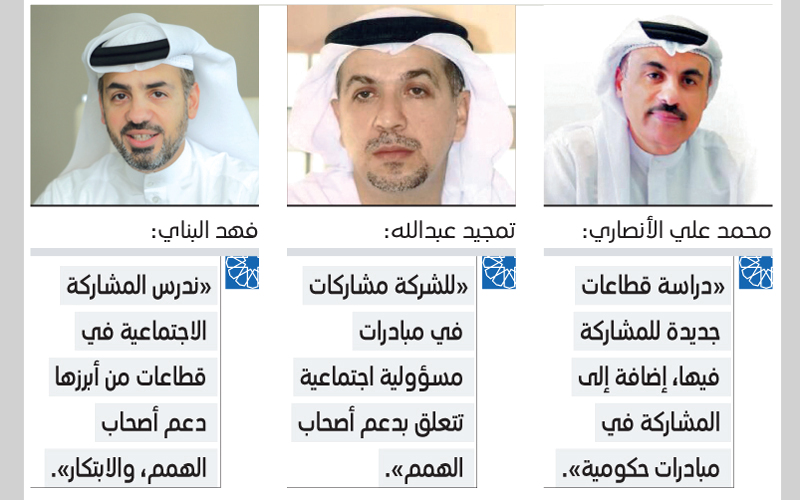 وأوضح أن معظم المشاركات تركزت في مجالات تتعلق بشؤون التعليم والصحة، كاشفاً أن الشركة تعتزم التوسع بشكل أكبر في مبادرات المسؤولية الاجتماعية خلال العام الجاري، وستتم دراسة قطاعات أخرى للمشاركة فيها، إضافة إلى المشاركة في مبادرات حكومية مختلفة خلال الفترة المقبلة. واتفق الأنصاري في أن انشاء صندوق وطني للمسؤولية الاجتماعية من المبادرات التي سيكون لها تأثيرات مفيدة على تحفيز مشاركات رجال الأعمال بمشروعات المسؤولية الاجتماعية.