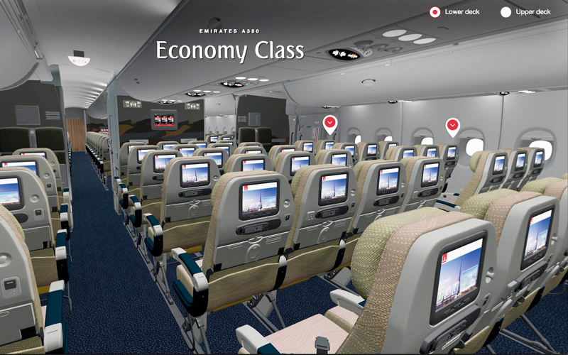 أطلقت «طيران الإمارات» نموذجاً ثلاثي الأبعاد لتوزيع المقاعد على موقعها الشبكي emirates.com، لتصبح بذلك أول ناقلة في العالم تستخدم تكنولوجيا «الواقع الافتراضي» على منصتها الرقمية.