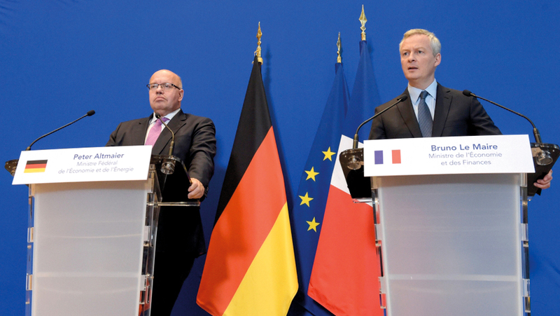 وقال لومير في مؤتمر صحافي، الليلة قبل الماضية، إثر لقائه التماير في باريس، إن «ألمانيا وفرنسا تقدمتا دوماً يداً بيد، وفي مسألة التجارة العالمية يمكنني التأكيد على أنهما ستواصلان التقدم يداً بيد خلال الأسابيع والأشهر المقبلة».