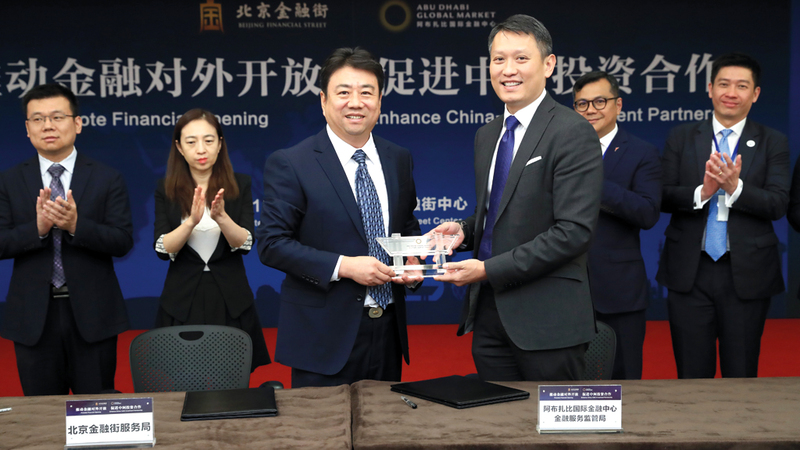 وقّع سوق أبوظبي العالمي، المركز المالي الدولي في أبوظبي، أخيراً مذكرة تفاهم مع مكتب بكين للخدمات المالية، لدعم وتطوير المراكز والأسواق المالية في دولة الإمارات والصين، وتعزيز التعاون والاستثمار حول مبادرة «الحزام والطريق». وتم توقيع المذكرة في العاصمة الصينية بكين، من جانب الرئيس التنفيذي لسلطة تنظيم الخدمات المالية في سوق أبوظبي العالمي، ريتشارد تنج، ونائب عمدة منطقة شيتشنغ التابعة لحكومة بلدية بكين، لي يي.