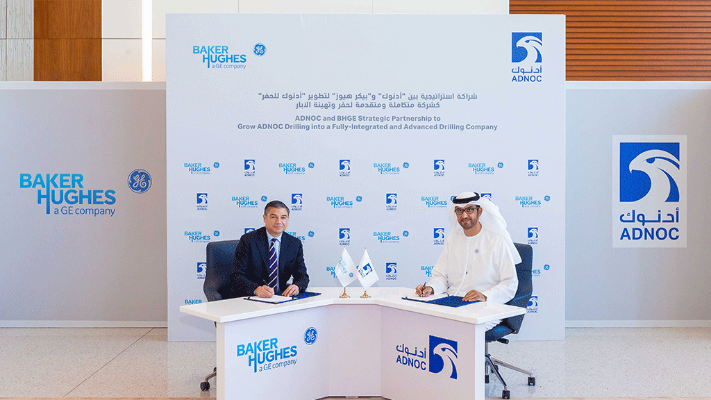 وقعت شركة بترول أبوظبي الوطنية " أدنوك " اليوم اتفاقية شراكة استراتيجية مع شركة بيكر هيوز التابعة لجنرال إلكتريك " BHGE " تهدف لدعم نمو وتطور "أدنوك للحفر" إحدى الشركات التابعة لأدنوك وترسيخ مكانتها شركة رائدة في خدمات الحفر المتكاملة لآبار النفط والغاز بالاستفادة من التكنولوجيا المتطورة والمتقدمة.