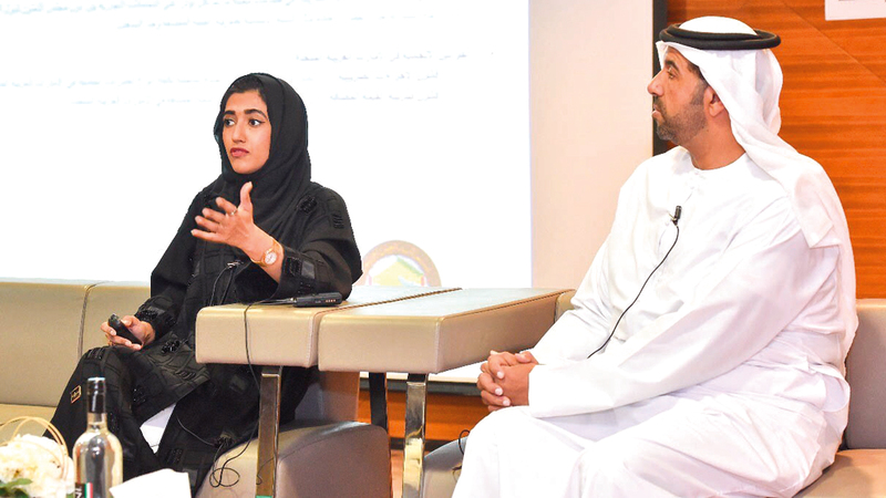 سارة الحبشي والمقبالي خلال ندوة جمعية رواد الأعمال. من المصدر