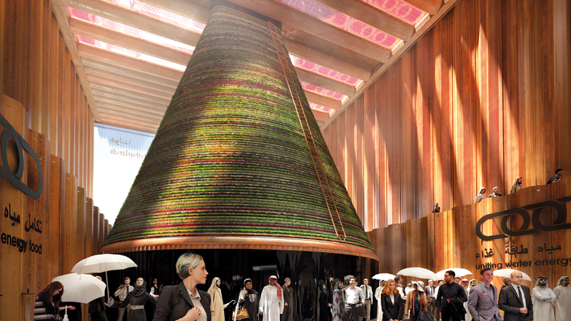 تصميم الجناح مخصص لاستعراض تكامل جهود هولندا في الماء والطاقة والغذاء. من المصدر