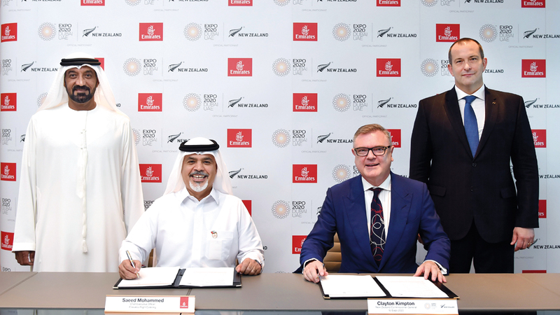 وذكرت المجموعة في بيان، أن المدير التنفيذي لـ«الإمارات لتموين الطائرات»، سعيد محمد، وقّع اتفاقية الشراكة مع المفوض العام النيوزيلاندي لـ«إكسبو دبي 2020»، كلايتون كيمبتون، بحضور سمو الشيخ أحمد بن سعيد آل مكتوم، الرئيس الأعلى الرئيس التنفيذي لطيران الإمارات والمجموعة، وسفير نيوزيلاندا لدى دولة الإمارات، جيريمي كلارك واتسون.