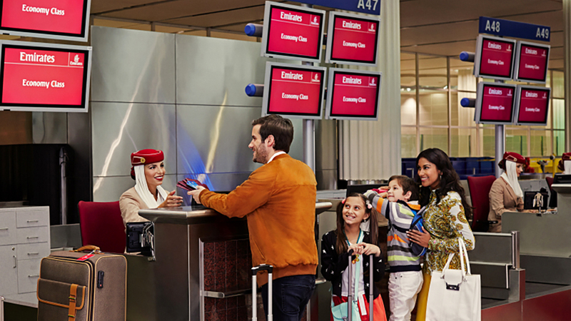 «طيران الإمارات» خصصت مناطق لإنهاء إجراءات سفر العائلات. من المصدر