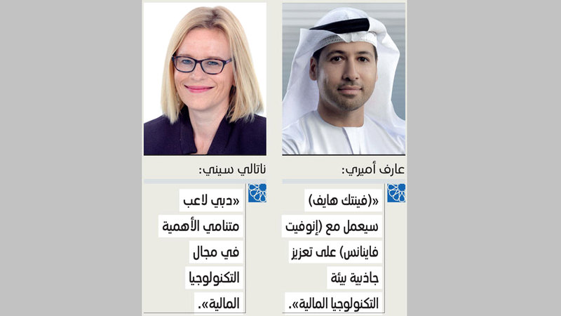 من جانبها، قالت رئيسة جمعية «إنوفيت فاينانس»، ناتالي سيني، إن «دبي أضحت اليوم لاعباً متنامي الأهمية في مجال التكنولوجيا المالية. ونتطلع قدماً إلى تعاون وثيق مع مركز دبي المالي العالمي لبناء شراكة شاملة، من شأنها تمكين شركات التكنولوجيا المالية الكبيرة والصغيرة في منطقتينا، من تحقيق النمو والنجاح».