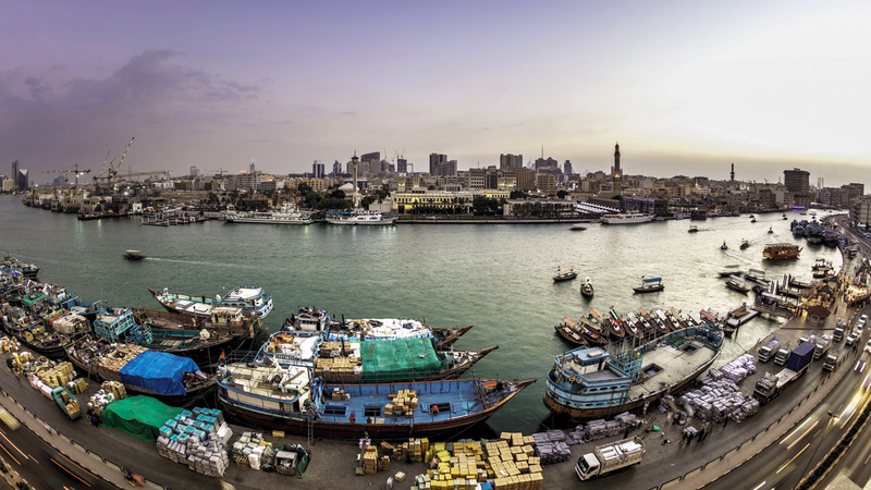 تجريف خور دبي وتنظيفه أسهما في زيادة عدد السفن وحجم البضائع الواردة إلى الإمارة. أرشيفية