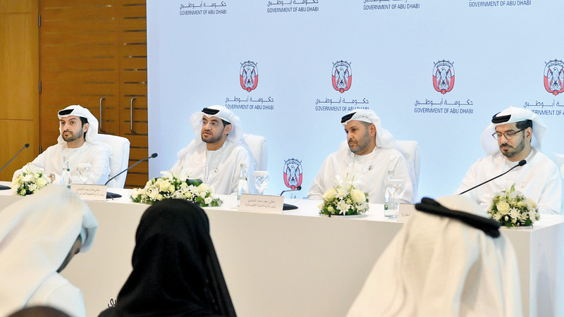 الهاجري (الثاني من اليمين) والأحبابي (الثالث) خلال المؤتمر الصحافي أمس. تصوير: نجيب محمد