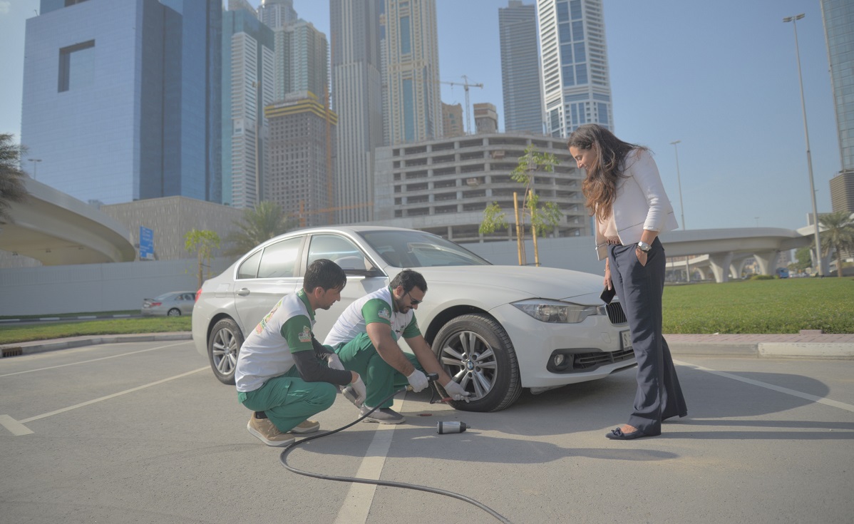 وتتضمن خدمة المساعدة على الطريق خدمات الطوارىء من ضمنها الشحن الفوري لبطارية السيارة وتغيير البطارية في مكان العطل وتسليم الوقود إلى السيارة وذلك مقابل 100 درهم إماراتي كرسوم خدمة ثابتة بالإضافة إلى ثمن تكلفة البطارية المستبدلة وثمن الوقود.