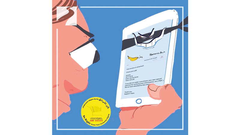 عزيزي المستهلك، احذر من الاستجابة لرسائل البريد الإلكتروني والرسائل النصية التي توهمك بأنها رسمية، ومرسلة من شركات ومؤسسات معروفة وعالمية، ولا تقم بدفع أو تحويل أو تقديم بيانات رخصة خاصة بك أو بحسابك البنكي حفاظاً على حقوقك.