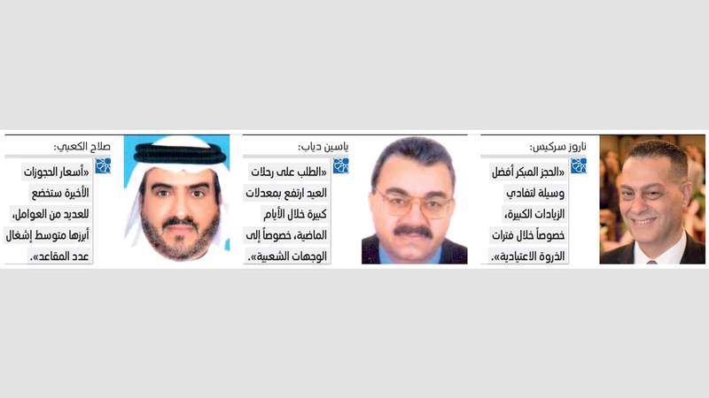 ولفت إلى أنه «مع تحول السفر إلى عادة لدى العديدين خلال عطلة نهاية الأسبوع، فقد لجأت شركات طيران إلى تسعير تذاكر الرحلات لهذه الأيام بمعدلات أعلى مقارنة بمستوياتها في أيام الأسبوع العادية»، مشيراً إلى أن الرحلات ضمن نطاق ثلاث ساعات تلقى طلباً كبيراً خلال العطلة.