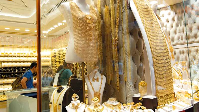 الذهب سجل ارتفاعات جديدة في نهاية الأسبوع بقيم راوحت بين درهم و1.5 درهم للغرام. تصوير: أحمد عرديتي