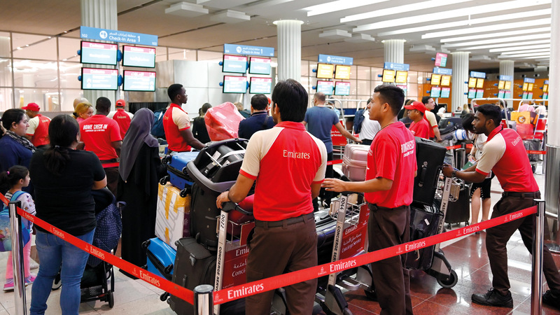 وقال نائب الرئيس للعمليات في مؤسسة مطارات دبي، عيسى الشامسي، إن «مطار دبي الدولي يعمل بكامل طاقته الاستيعابية، لتسهيل تدفق الركاب بالنسبة لرحلات المغادرة والوصول، فضلاً عن مسافري (الترانزيت)»، مشيراً إلى أن المؤسسة تتخذ إلى جانب شركات الطيران وشركاء الخدمات الآخرين، خطوات لضمان عدم تأثير ارتفاع حجم الحركة على تجربة المتعاملين، إذ تعمل «مطارات دبي» على رفد أعداد الموظفين في نقاط التعامل المباشر مع المتعاملين، بدءاً من رصيف المطار، وانتهاءً ببوابات المغادرة، وذلك في مسعى لضمان التدفق السلس للمسافرين.
