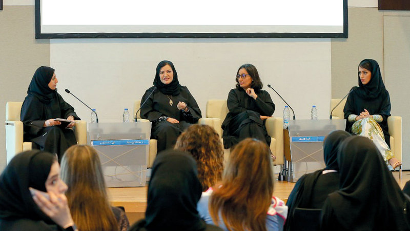 خلال الجلسة النقاشية التي تخللها الاحتفال بيوم المرأة الإماراتية. من المصدر