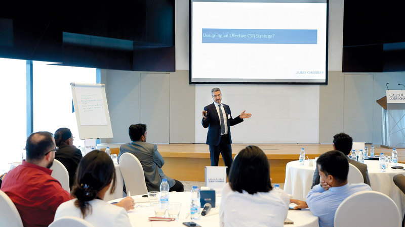 نظمت غرفة تجارة وصناعة دبي، ممثلةً بمركز أخلاقيات الأعمال، ورشة عمل حول كيفية تطوير وتفعيل دور المسؤولية المجتمعية للمؤسسات في المشروعات الصغيرة والمتوسطة.