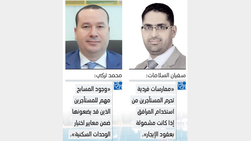 وأوضح أنه إذا كانت الشركات العقارية تؤجر الوحدات السكنية بأسعار مرتفعة، مع وجود مرافق مثل المسابح، ويتم تعطيلها لاحقاً، فيكون للمستأجرين الحق بحرية الانتقال إلى وحدات سكنية ببنايات أخرى، أو أن تكون الأمور بالتراضي بين الطرفين، مع خفض الشركات للرسوم الإيجارية وقتها، تعويضاً عن تعطيل تلك المرافق.