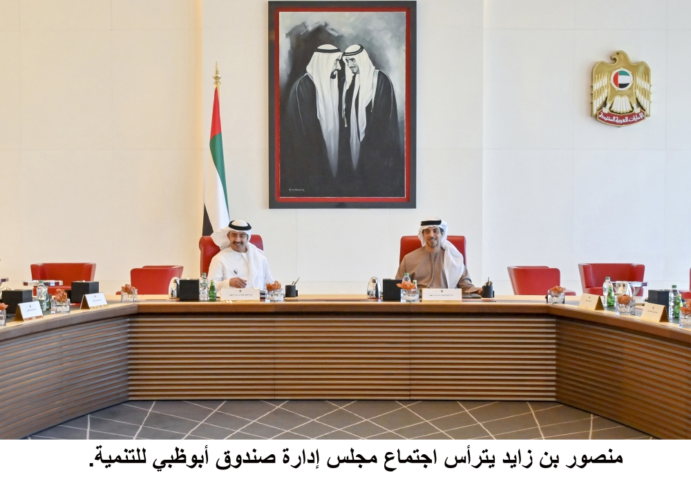 ترأس سمو الشيخ منصور بن زايد آل نهيان نائب رئيس مجلس الوزراء وزير شؤون الرئاسة رئيس مجلس إدارة صندوق أبوظبي للتنمية، اليوم، اجتماع مجلس إدارة الصندوق، الذي عقد بحضور سمو الشيخ عبدالله بن زايد آل نهيان وزير الخارجية والتعاون الدولي نائب رئيس مجلس الإدارة، وأعضاء مجلس الإدارة، ومدير عام الصندوق.