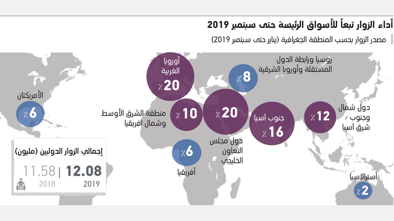 وسجّلت الولايات المتحدة الأميركية زيادة بنسبة 1%، لتحلّ مع روسيا بالمركزين السادس والسابع، مع عدد زوار بلغ على التوالي 481 ألفاً و433 ألف زائر، خلال الأشهر التسعة الأولى من عام 2019.
