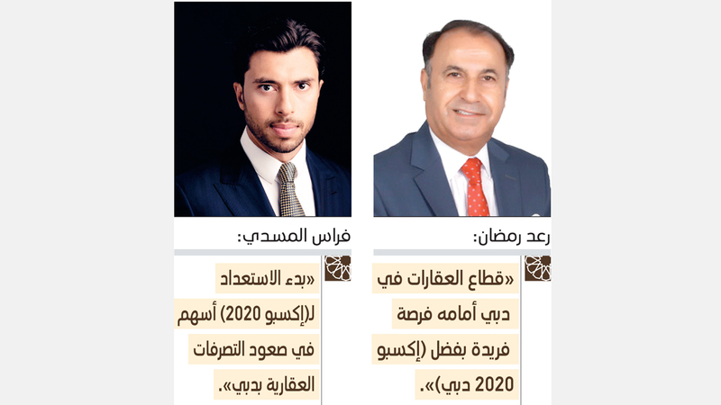 من جهته، قال المدير العام في شركة «عوض قرقاش» للعقارات، الدكتور رعد رمضان، إن قطاع العقارات في دبي أمامه فرصة فريدة بفضل معرض «إكسبو 2020 دبي» الدولي، الذي سيزيد من النشاط الاقتصادي في الإمارة بشكل خاص ودولة الإمارات عموماً، مع جذب المزيد من السياح والمقيمين الجدد، والذين يعتبرون مستثمرين عقاريين محتملين في المستقبل، لاسيما مع التوقعات الكبيرة لعدد زوار المعرض.