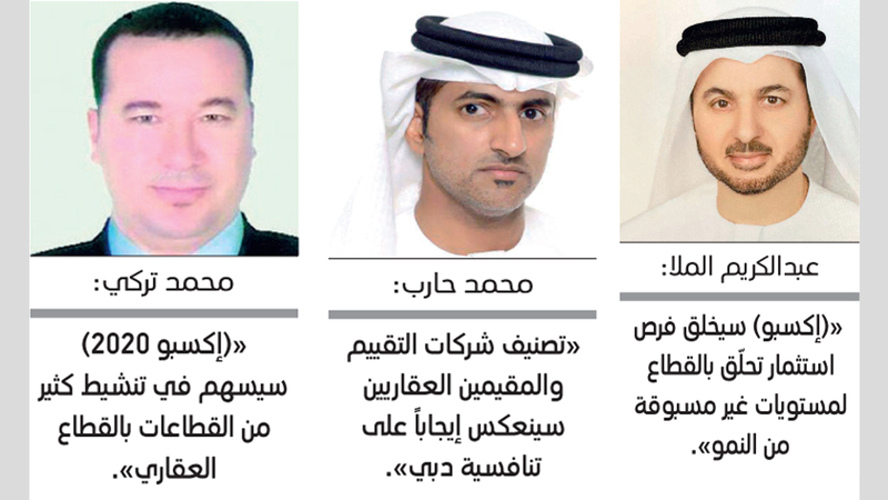 وتفصيلاً، قال مدير «شركة الوليد العقارية»، محمد تركي، إن «استضافة معرض (إكسبو 2020)، من المتوقع أن تسهم في تنشيط كثير من القطاعات والأنشطة المرتبطة بالقطاع العقاري، ومن بين أبرز هذه القطاعات قطاع التقييم العقاري».