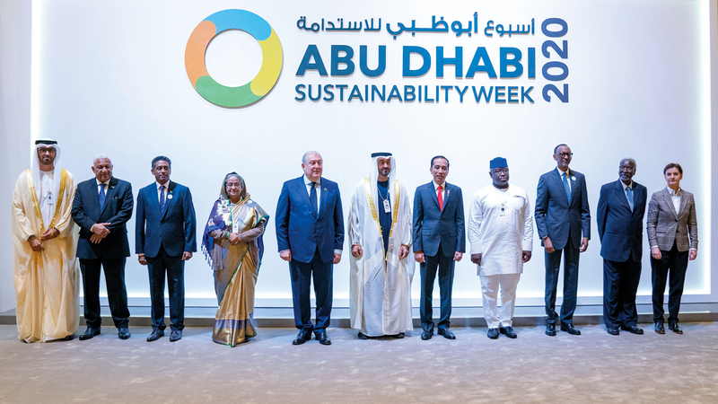 شهد صاحب السمو الشيخ محمد بن زايد آل نهيان، ولي عهد أبوظبي نائب القائد الأعلى للقوات المسلحة، وعدد من قادة الدول وممثليها، في مركز أبوظبي الوطني للمعارض «أدنيك»، أمس، حفل افتتاح «أسبوع أبوظبي للاستدامة 2020»، الذي يُقام تحت عنوان «تسريع وتيرة التنمية المستدامة»، مؤكداً سموه أن الأسبوع منبر للحوار وصياغة الأفكار واستراتيجيات العمل التي تتمحور حول قضايا الاستدامة.