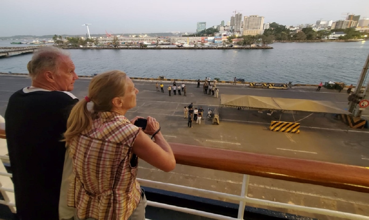 وقال قائد السفينة فينسنت سميت، في رسالة للركاب إنها سترسو خارج سيهانوكفيل أولا حتى تتمكن السلطات من إجراء الفحوص الطبية اللازمة.