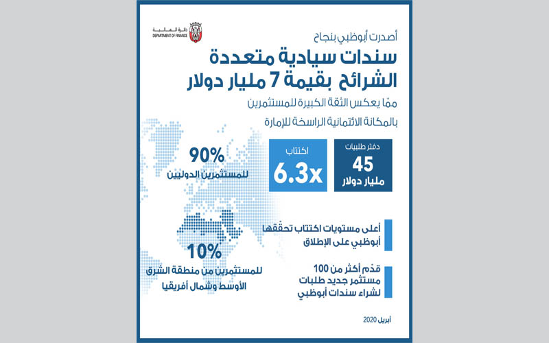 ويعد الإصدار جزءاً من استراتيجية أبوظبي متوسّطة الأجل والهادفة إلى تعزيز هيكل رأسمال الإمارة، ويعكس الإقبال الكبير ثقة المستثمرين المستمرة بالمكانة الائتمانية الراسخة للإمارة.