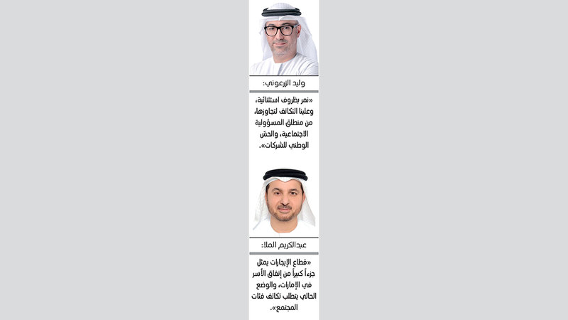 من جهته، دعا الخبير العقاري رئيس مجلس إدارة «شركة دبليو كابيتال للوساطة العقارية»، وليد الزرعوني، الملاك ومديري العقارات في الإمارات إلى إطلاق مبادرات خاصة لدعم عملائهم، والتخفيف من الضغوط الاقتصادية عليهم، ومساعدتهم على تجاوز هذه الأوضاع الطارئة الناتجة عن أزمة فيروس «كورونا»، بتقديم إعفاءات من الإيجار لأصحاب الوحدات السكنية لفترات معينة، وتأجيل الأقساط الإيجارية، بما يناسب كل حالة من حالات المستأجرين، مقترحاً أن يتم إعفاء المستأجرين من دفع الإيجارات المستحقة لمدة معينة أو الخفض من نسبتها.