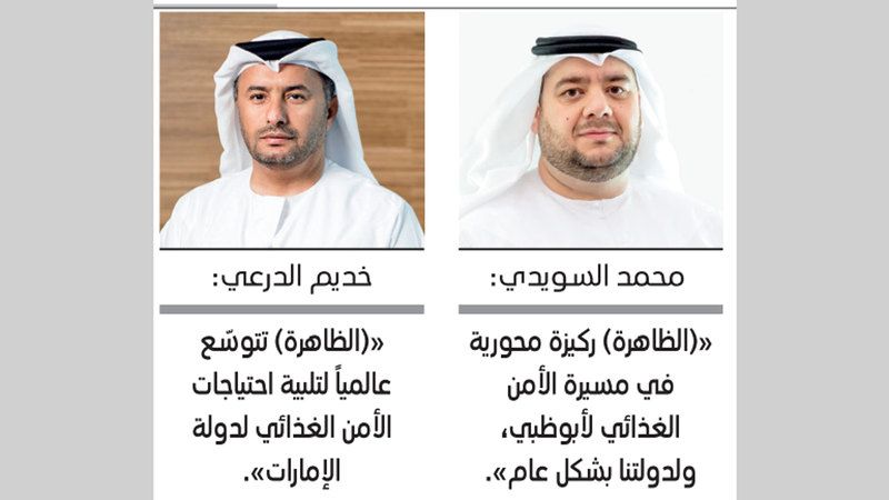 وقال الرئيس التنفيذي لـ«القابضة»، محمد حسن السويدي: «يحظى مجال الزراعة والأغذية بأهمية استراتيجية في (القابضة)، نظراً إلى تسارع نموه وإسهامه في تحقيق الأجندة الاقتصادية والاجتماعية لإمارة أبوظبي. وقد تمكّنت شركة (الظاهرة) منذ تأسيسها بدولة الإمارات عام 1995 من تحقيق النمو لتصبح شركة عالمية متخصصة في إنتاج الأغذية والأعلاف، كما تعدّ الشركة ركيزة محورية في مسيرة الأمن الغذائي لإمارة أبوظبي، ولدولتنا بشكل عام».