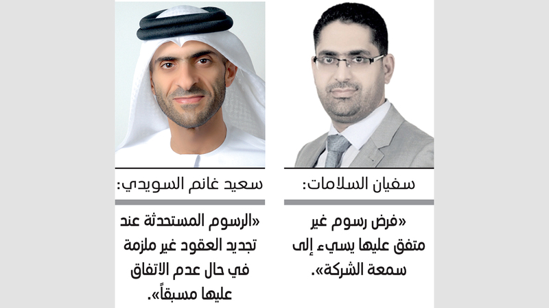 من جهته، قال رئيس اللجنة التمثيلية لقطاع العقارات في غرفة تجارة وصناعة الشارقة، رئيس «شركة الغانم للعقارات»، سعيد غانم السويدي، إن فرض بعض الشركات أو ملاك العقارات رسوماً مستحدثة عند تجديد العقود، كبديل لعمولات التأجير السنوية، غير ملزم للمستأجرين في حال عدم الاتفاق عليها مسبقاً، أو كانت غير مدونة في العقود الأساسية التي تحدد العلاقة بين الطرفين.