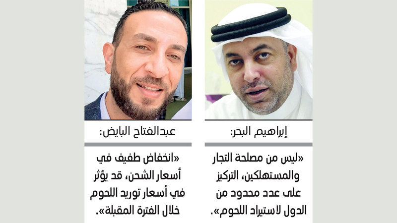وقال البحر إنه ليس من مصلحة التجار والمورّدين والمستهلكين، التركيز على استيراد اللحوم من عدد محدود من الدول، إذ يتيح ذلك للمصدرين في الدول الخارجية التحكم في الأسعار والجودة.