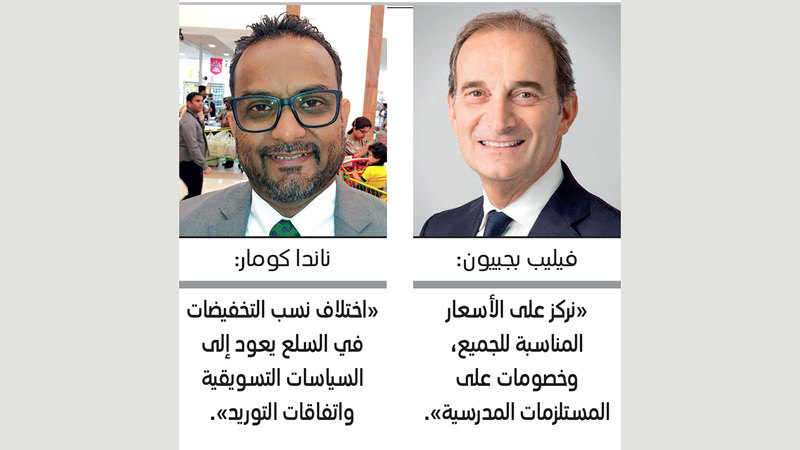 من جهته، قال مدير «كارفور الإمارات» لدى «شركة ماجد الفطيم للتجزئة»، فيليب بجييون، إن منافذ بيع «كارفور» تطرح خلال موسم العودة إلى المدرسة، خصومات تجاوز نسبتها 50% على المستلزمات المدرسية.