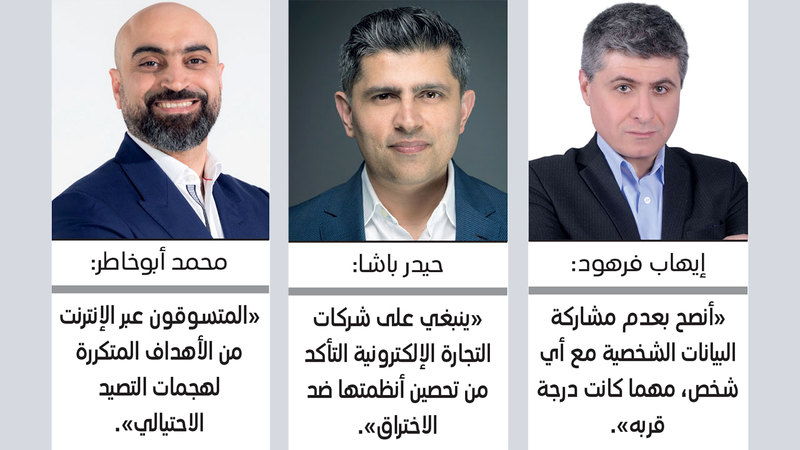 من جانبه، اتفق رئيس هندسة الحلول في شركة «في إم وير» لمنطقة الشرق الأوسط وتركيا وشمال إفريقيا، إيهاب فرهود، مع باشا على ضرورة زيارة المتاجر الإلكترونية المعروفة والموثوقة، وتجنب «الصغيرة» غير المعروفة التي قد ينطوي التسوق منها على مخاطر أمنية، لافتاً إلى أن المتاجر الكبيرة والمعروفة أكثر أماناً، إذ تطبق إجراءات أمنية صارمة لحماية التعاملات الإلكترونية.