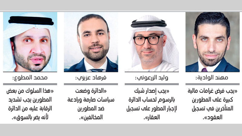 وأكدوا، في تصريحات لـ«الإمارات اليوم»، أنهم رصدوا عدداً من الشكاوى من مستثمرين، تفيد بتأخر بعض المطورين في إصدار «الملكية المؤقتة» للعقار، مطالبين بإيداع رسوم التسجيل في حساب خاص بدائرة الأراضي والأملاك، لوقف هذه السلوكيات من جانب بعض المطورين، وحثهم على سرعة التسجيل.