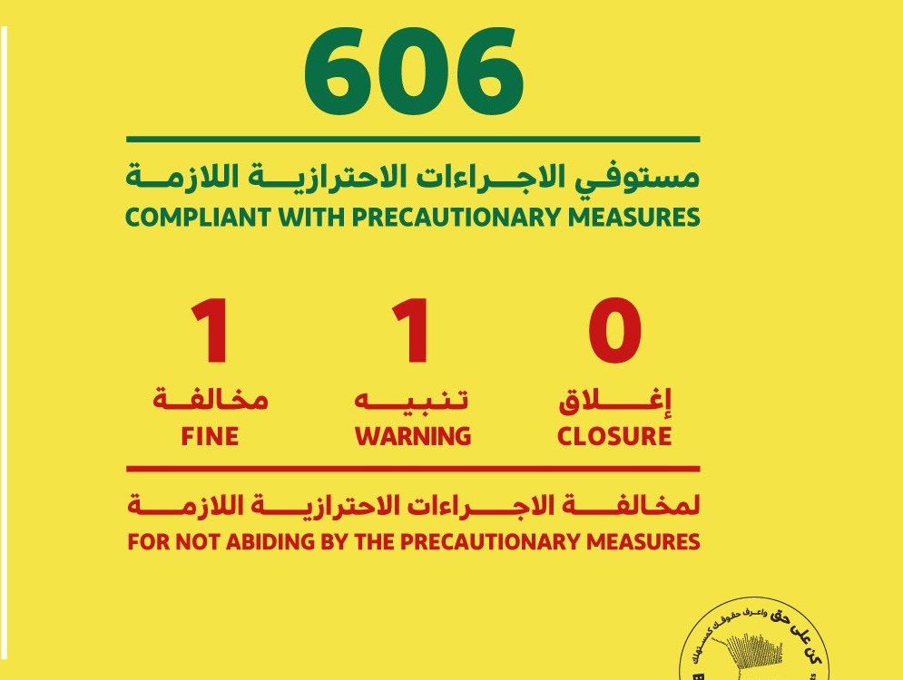 في حين بلغ عدد المنشآت التجارية المستوفية للاشتراطات والتدابير الاحترازية 606.