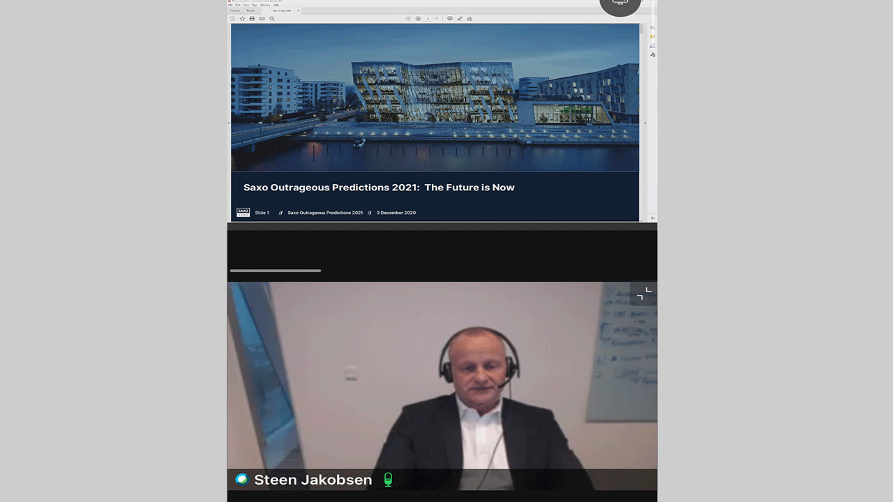 وقال مدير شؤون الاستثمار في ساكسو بنك، ستين جاكوبسن، في إحاطة إعلامية عن بعد أمس، إن تقرير التوقعات الصارمة للبنك لا يمكن اعتباره التوقعات الرسمية للأسواق في عام 2021، إلا أنه يمثل تحذيراً من التوزيع المحتمل للمخاطر بين المستثمرين الذين لا يعتقدون بإمكانية وقوع هذه الأحداث إلا بنسبة 1%.
