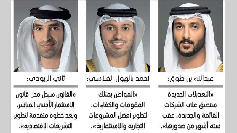 من جانبه، أكد وزير دولة لريادة الأعمال والمشروعات الصغيرة والمتوسطة، الدكتور أحمد بالهول الفلاسي، أن «إلغاء إلزامية تملُّك المواطنين في الشركات العاملة بالدولة، فرصة حقيقية لتشجيع المواطنين على ممارسة الأعمال والاستثمار في السوق المحلية، بشكل مباشر وتملك الشركات بنسبة 100%، وليس عن طريق شراكات كما يحدث حالياً»، مشيراً إلى أنه من المتوقع أن تسهم التعديلات في زيادة دخول عدد كبير من المواطنين قطاع ريادة الأعمال.